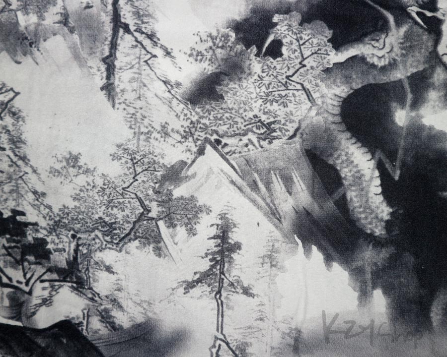 เสื้อฮาวายลายญี่ปุ่น Modern VOICE ลาย มังกรกับภูเขาไฟ