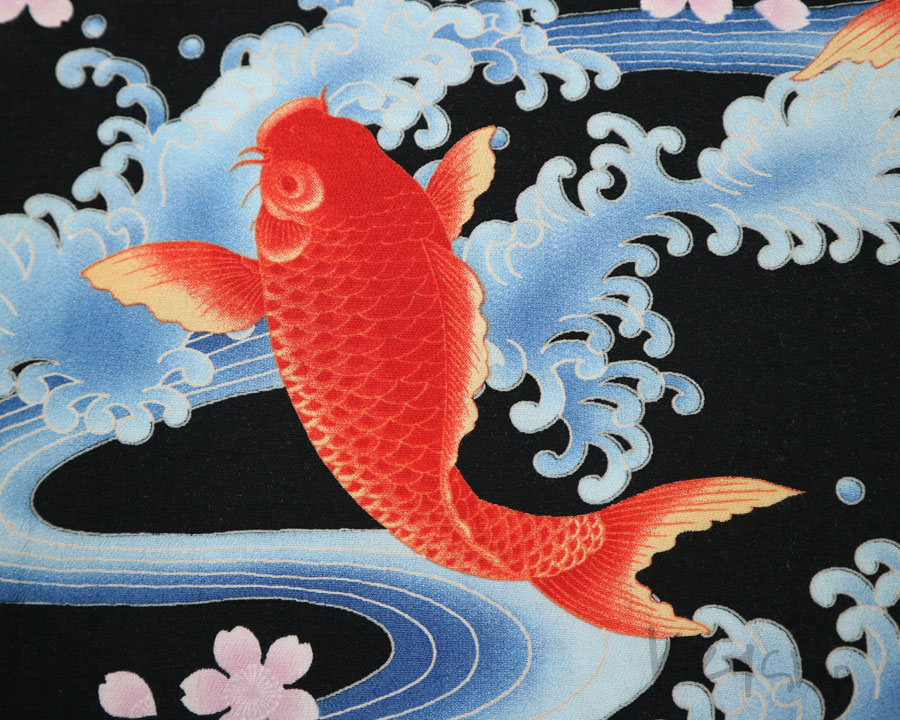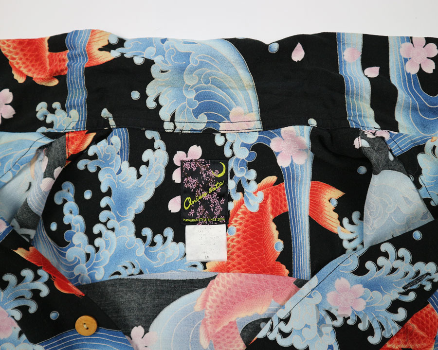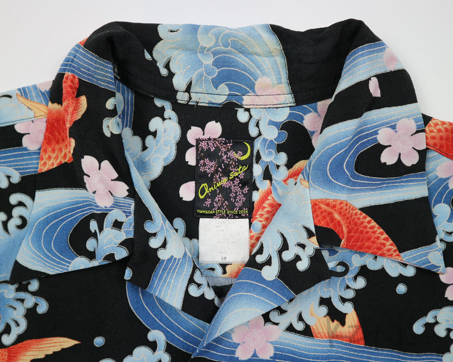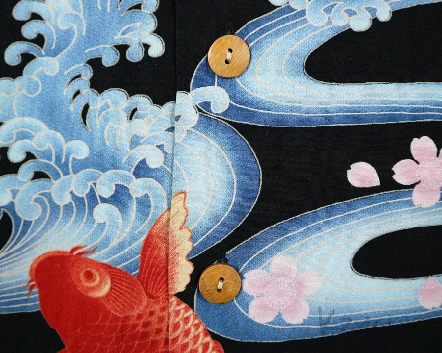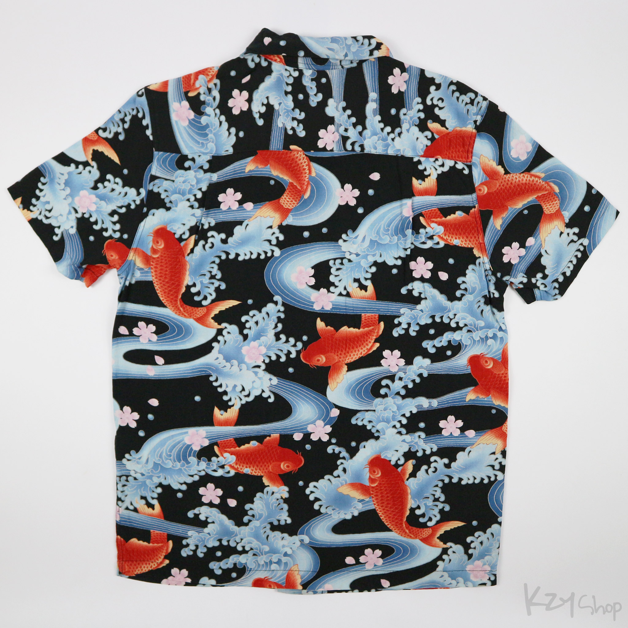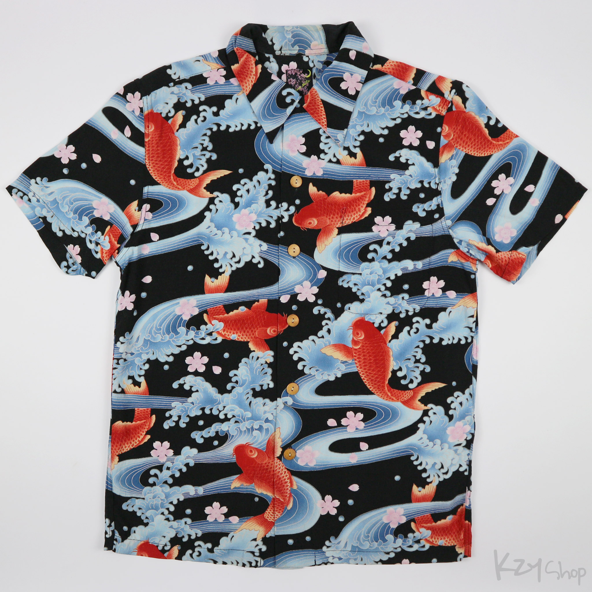 เสื้อฮาวายลายญี่ปุ่น Oniwa soto ลาย ปลาคาร์พในคลื่นน้ำ