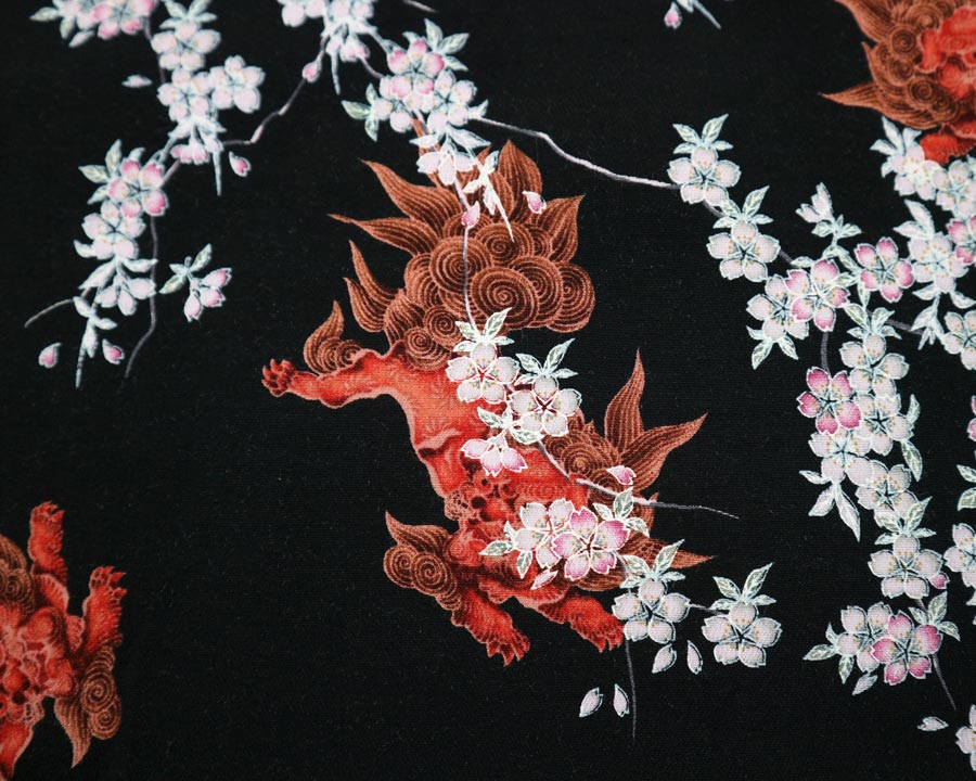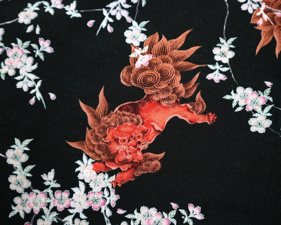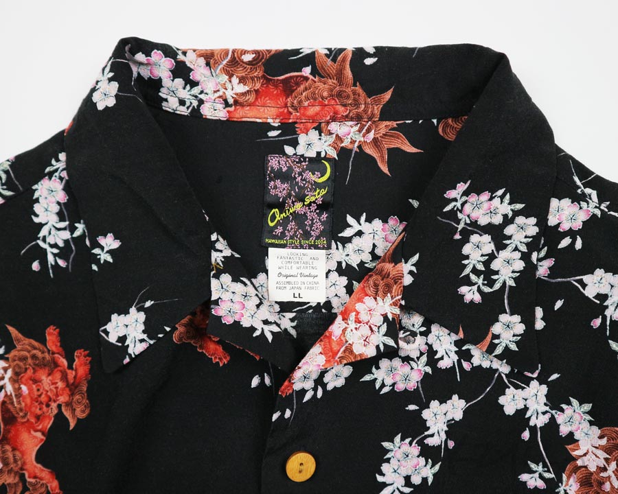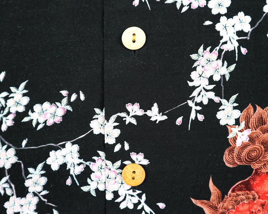เสื้อฮาวายลายญี่ปุ่น Oniwa soto ลาย สิงห์แดงกับดอกซากุระ