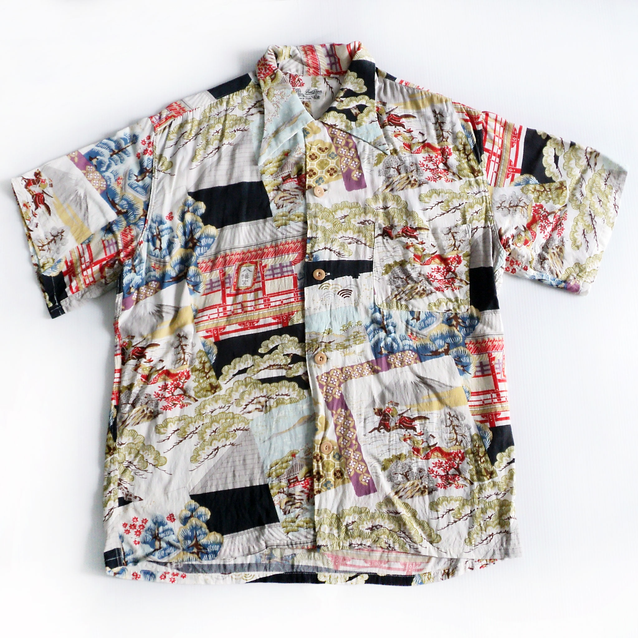 เสื้อฮาวายลายญี่ปุ่น Pearl Diver ลาย ปราสาท คนขี่ม้ายิงธนู
