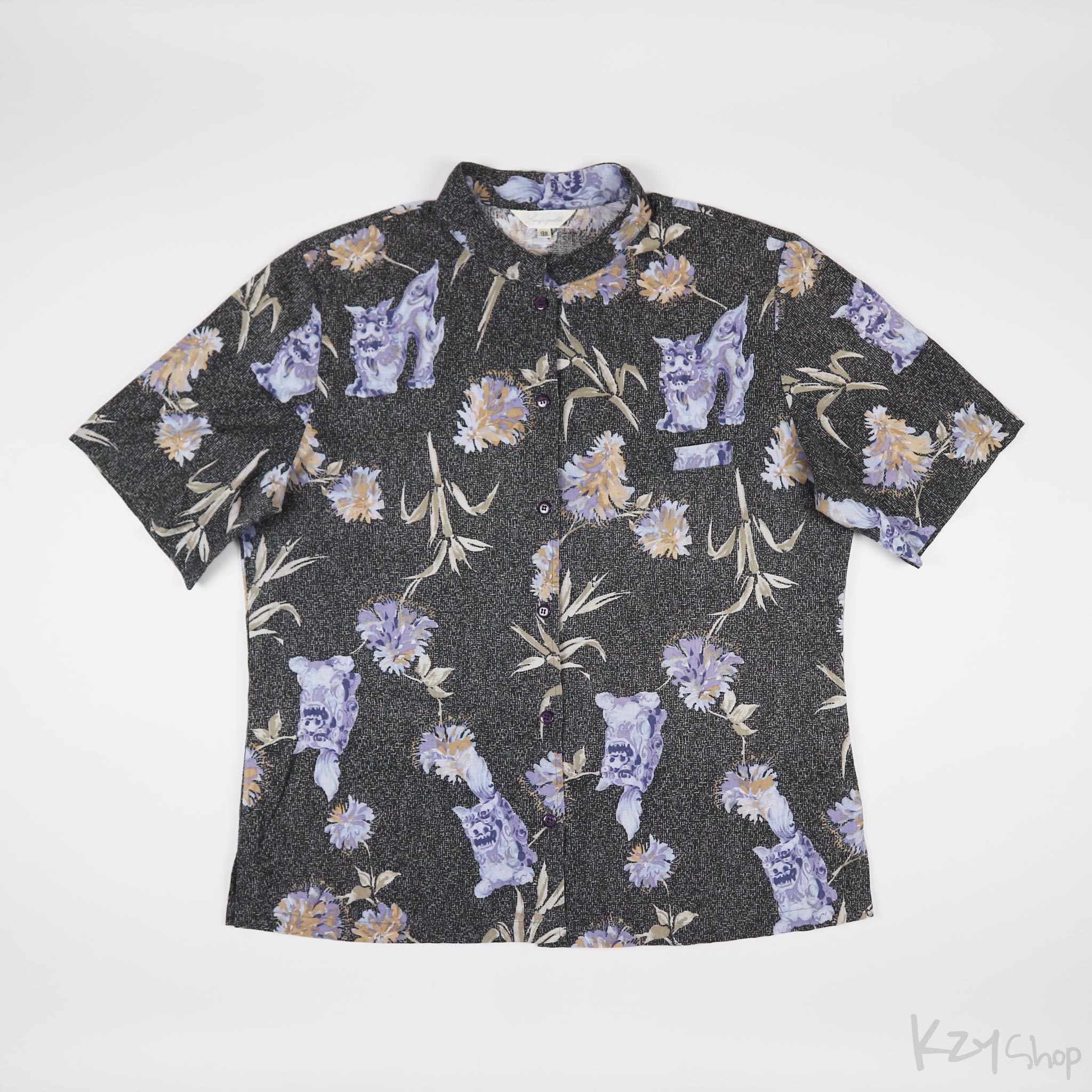 เสื้อฮาวายลายญี่ปุ่น Sanpigalle ลาย สิงห์กับดอกไม้