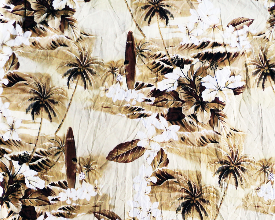 เสื้อฮาวาย Aloha Hut ลาย ต้นมะพร้าว/ดอกไม้/ใบไม้/คนถือกระดานโต้คลื่น