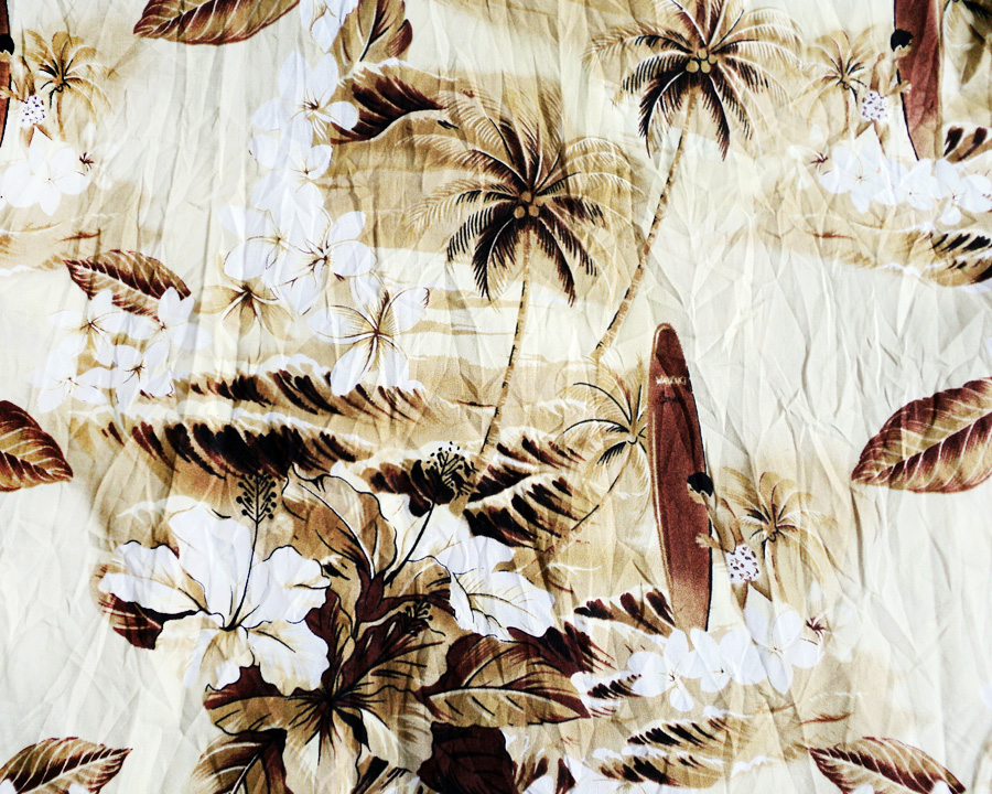 เสื้อฮาวาย Aloha Hut ลาย ต้นมะพร้าว/ดอกไม้/ใบไม้/คนถือกระดานโต้คลื่น กระเป๋าลายต่อ