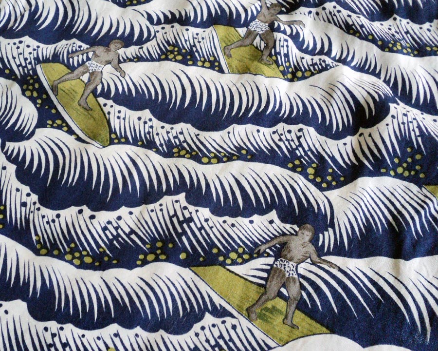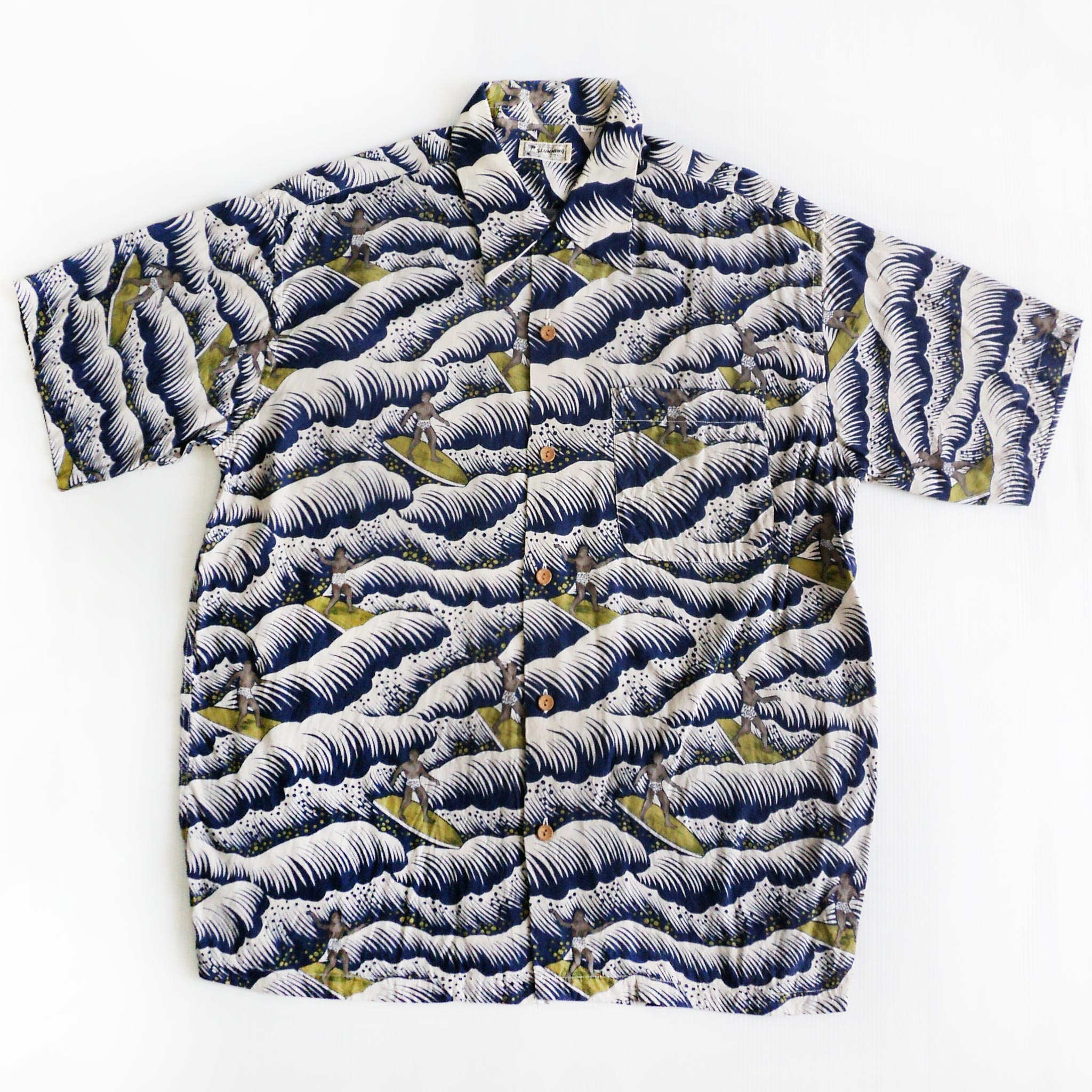 เสื้อฮาวาย SLUMMING สี น้ำเงิน ลาย คนเล่นกระดานโต้คลื่น