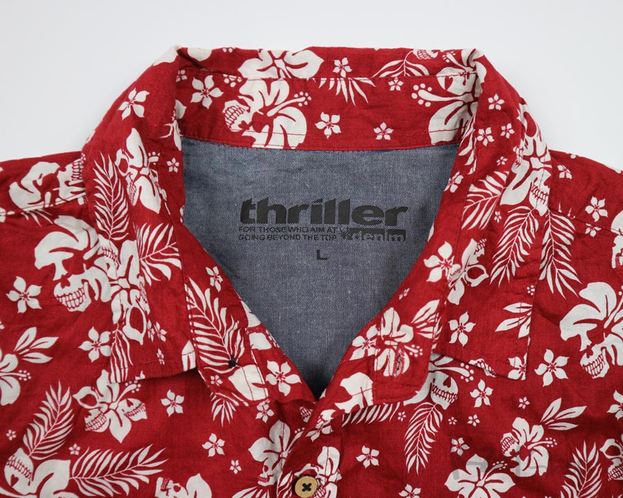 เสื้อฮาวาย thriller denim ลาย กะโหลก ดอกไม้